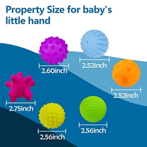 - 👶🏻【SAFE BABY TOYS 6-12 MONTHS】BPA Free – Each stress relief infants textured multi ball is non-toxic and this baby ball complies with the US ASTM toys safety standards, and All Sensory Balls DO NOT have small plastic plugs to avoid the danger of suffocation, but they still make sounds. which means it is safe for your little ones. It is easy to wipe clean. Making it the safest choice teething toys for babies and for toddler. Recommended Baby toys 0-6 months sensory toys for toddlers 1-3.