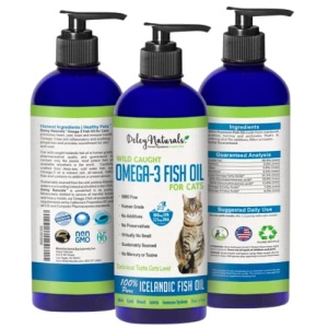 - PURE FISH OIL – Deley Naturals Wild Caught Omega-3 Fish Oil for Cats is 100% pure fish oil and has no added ingredients. Our all natural, sustainably sourced liquid fish oil supplement has virtually no odor but has a delicious fish flavor all cats love!