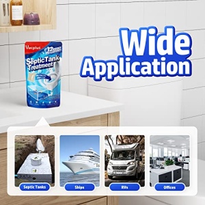 - WIDE APPLICATION: The neutral ingredients make the septic treatment suitable for almost all septic systems and sewage systems. It can be widely used for household septic tanks, commercial sewage tanks, and sewage tanks in boats or RVs. Just 1 septic treatment keeps numerous septic tank problems away!