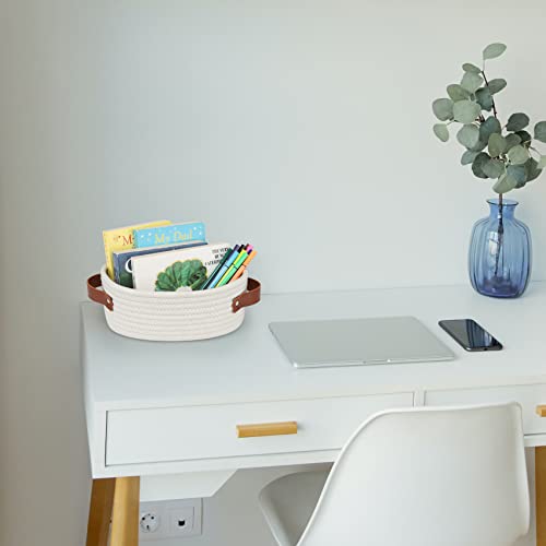 ABenkle Small Woven Basket, Mini Cotton Rope Storage Basket, Tiny White Basket, Shelf Basket, Oval Decorative Toy Dog Cat Basket for Nursery, Kids Room, Empty Gift Basket Baby Basket, 10″ x 6″ x 4″ XS