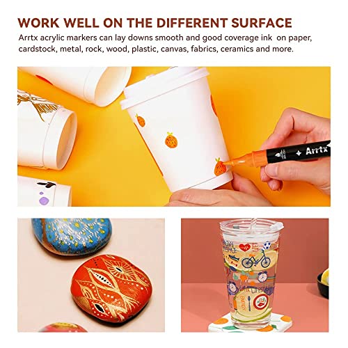 - 🎨 [Work well on Multi Surfaces] – Arrtx drawing markers set provides water-based smooth ink for a variety of surfaces, including rock painting, metal, paper, wood, plastic, canvas, fabrics, ceramics, and more. Warmly tips: If you need to put your artwork outdoors or in water, it is recommended to spray sealant after drying, which avoids being reactivated by water and smears.