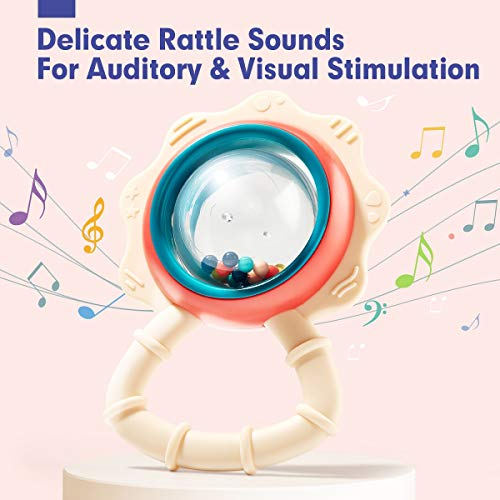 - 【Various Shapes and Sizes】At 3 months of age, babies use their hands to explore and engage with their surroundings. Our rattles are designed with multiple easy-grip handles, lovely shapes, and a perfect size for little hands to grab and shake. They’re so captivating that babies hold on tightly, promoting their grasp reflex and fine motor skill development. As babies grow, they learn to shake the rattles intentionally, further enhancing their cognitive and sensory development.