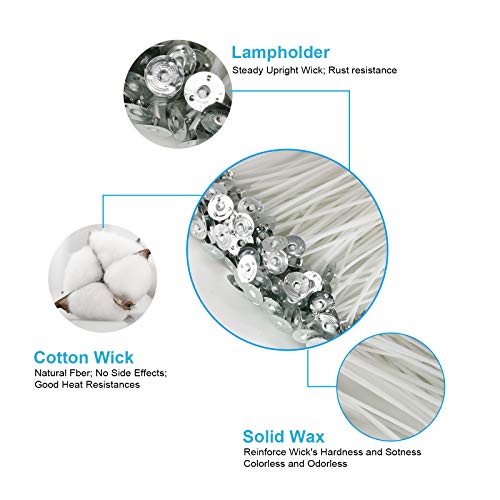 - Candle Wicks: ECO-FRIENDLY 100% cotton. Measures 6 inch in length and base 0.7 in diameter. Our wax will burn clean and non-toxic, No lead and zinc so there’s no bad smell during burning. No Black Smoking and Burning Stability when lit, safer and healthier to use.