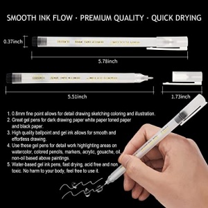 - SMOOTH INK FLOW: High quality ballpoint and gel ink allows for smooth and effortless drawing. flows nicely, no skipping. Great for embellishments and accents or creating reflections and highlights in artwork. Use these gel pens for detail work highlighting areas on watercolor, colored pencils, markers, acrylic, gouache, oil, non-oil based above paintings.