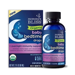 - Mommy’s Bliss Organic Baby Bedtime Drops plus Overnight Immunity Support promotes restful sleep with natural herbs and supports immunity with elderberry and vitamin C.