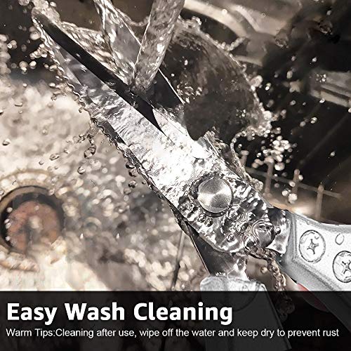 - ✄Make No Effort with Larger Anti-Grip Handle – Larger handles are better with kitchen shears, since heavier-duty tasks are much easier to accomplish if you can use the strength of your entire hand and all its fingers.Bigger handles are more comfortable for some larger pawed Americans.Besides,our professional kitchen shears have an adjustable screw for tightening or loosening tension. Without an adjustable screw, the blades may be loose at the pivot and pop apart when exerting pressure.