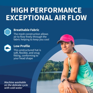 Details: Stay ahead of the competition with TrailHeads Women’s Race Day Performance Running Cap. This hat keeps you cool and dry during workouts, helping you hit your stride. It’s the ideal accessory for your warm-weather outdoor activities. We crafted it from moisture-wicking fabric and with lightweight 100% polyester mesh, making it a quick drying hat that ensures comfort during tough endurance training. The baseball cap style includes a dark underbill that reduces glare, so you can focus on your workout. A stylish, reflective trim on the cap and a subtle reflective TrailHeads logo on the side provide safety for early morning or late night training. Don’t sweat it! At TrailHeads, we’re all about making our customers happy. Like your training regime, your gear is important too–don’t settle for low quality baseball caps. Experience superior airflow with our lightweight women’s running cap, which offers style and functionality. Wear this cap for running, hiking, biking, outdoor boot camp, golf, tennis, baseball games, or any sunny outdoor activity. A hook and loop velcro closure provides quick and easy adjustments while keeping your cap secure on your head, so go ahead and crush that PR! Whether you’re feeling incognito in a neutral color or bold with a vibrant pink, TrailHeads has a color to match every mood and style. Not only will you stay comfortable and dry during your workouts, but you’ll look good too! This low profile cap fits most women, designed to fit heads between 20 ½”-23 ⅝” in circumference with a visor measuring 2 ¾”. If you need a larger size, consider our Men’s Race Day Performance Running Cap.
