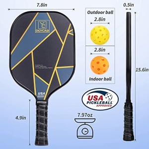 - 【Cost-effective suit】USAPA Pickleball Approved, If you buy our Pickleball Paddle Set, you will get 2 rackets, 4 balls, 1 storage bag. Save all your purchases on the field in one go, saving your shopping time. Every YC DGYCASI pickleball paddle is designed to be an awesome pickleball paddle for either a beginner or a professional player.
